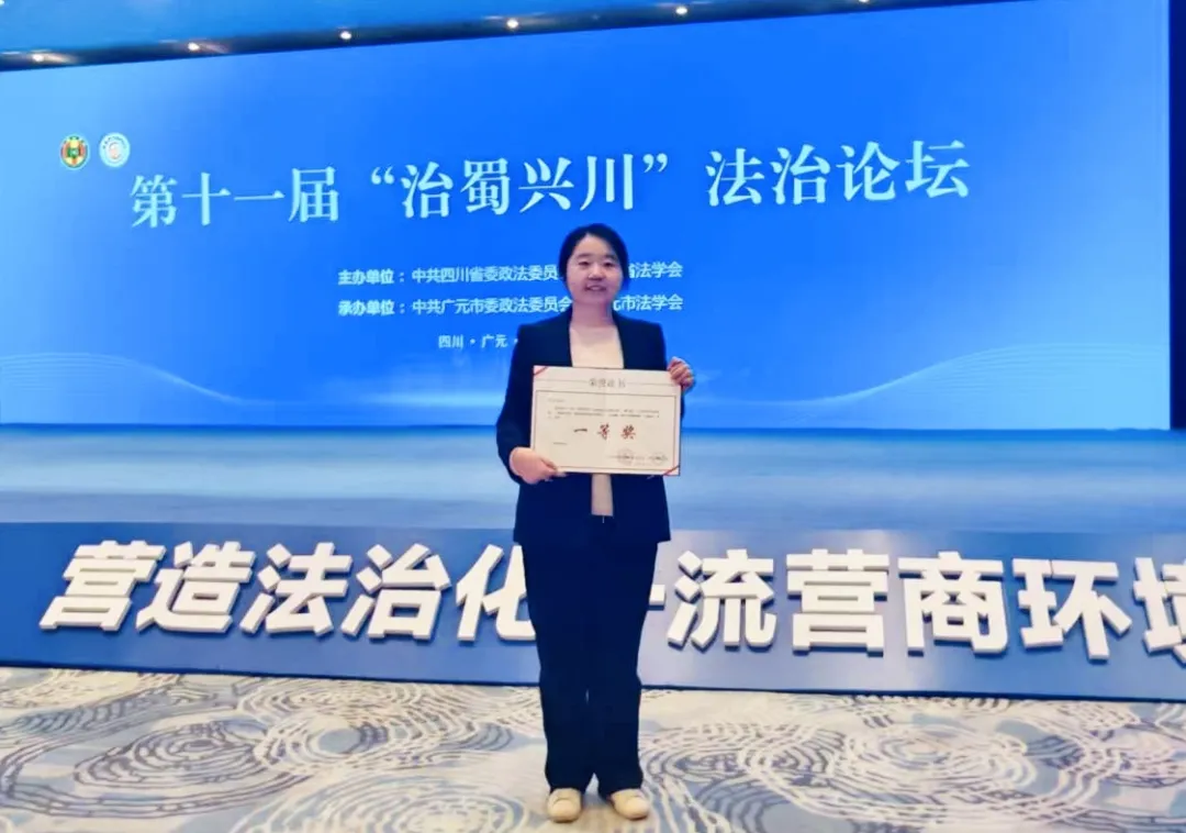 活动现场,宣读了《关于第十一届“治蜀兴川”法治论坛主题征文获奖论文和优秀组织单位的通报》。内江市委党校教师寿洁所作《<民营经济促进法>“政策承诺”条款的规范效力研究——以遏制“新官不理旧账”为视角》荣获一等奖,寿洁作为获奖代表上台领奖。据悉,该论坛共征集论文 1478篇,经组织专家按程序严格、规范、公正评审和公示,共评出一等奖10篇、二等奖23篇、三等奖31 篇和优秀奖 40篇,评选出10个优秀组织单位。