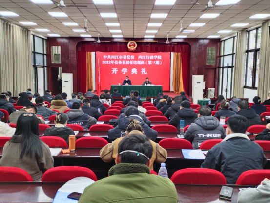 2022年公务员初任培训班(第3期)全体学员,市委组织部、市公务员局、内江市委党校(行政学院)相关科室负责同志参加了开班式。
