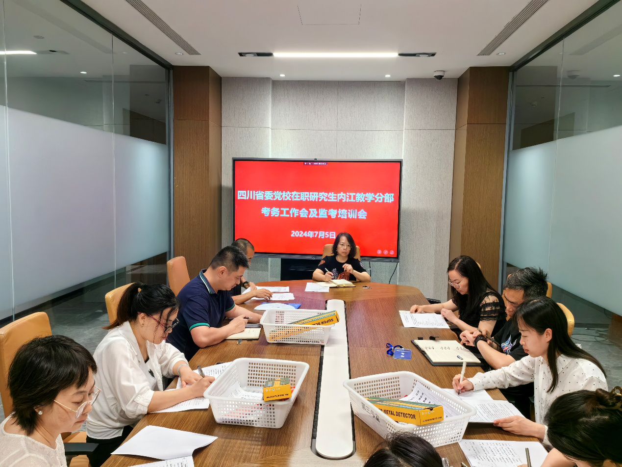 为加强在职研究生期末考试考风考纪工作,7月5日,内江市委党校召开期末考务工作会议,专题部署期末考试考务工作,会议由分管副校长副校长黄敏主持,考务及监考人员参加此次会议。