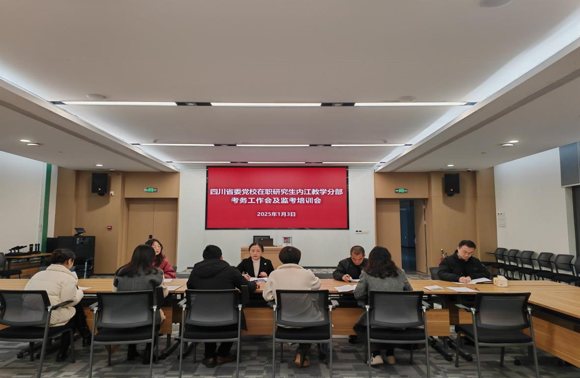 为加强在职研究生期末考试考风考纪工作,1月3日,内江市委党校召开期末考务工作会议,专题部署期末考试考务及监考工作,会议由分管副校长夏红丽主持,考务及监考人员参加此次会议。