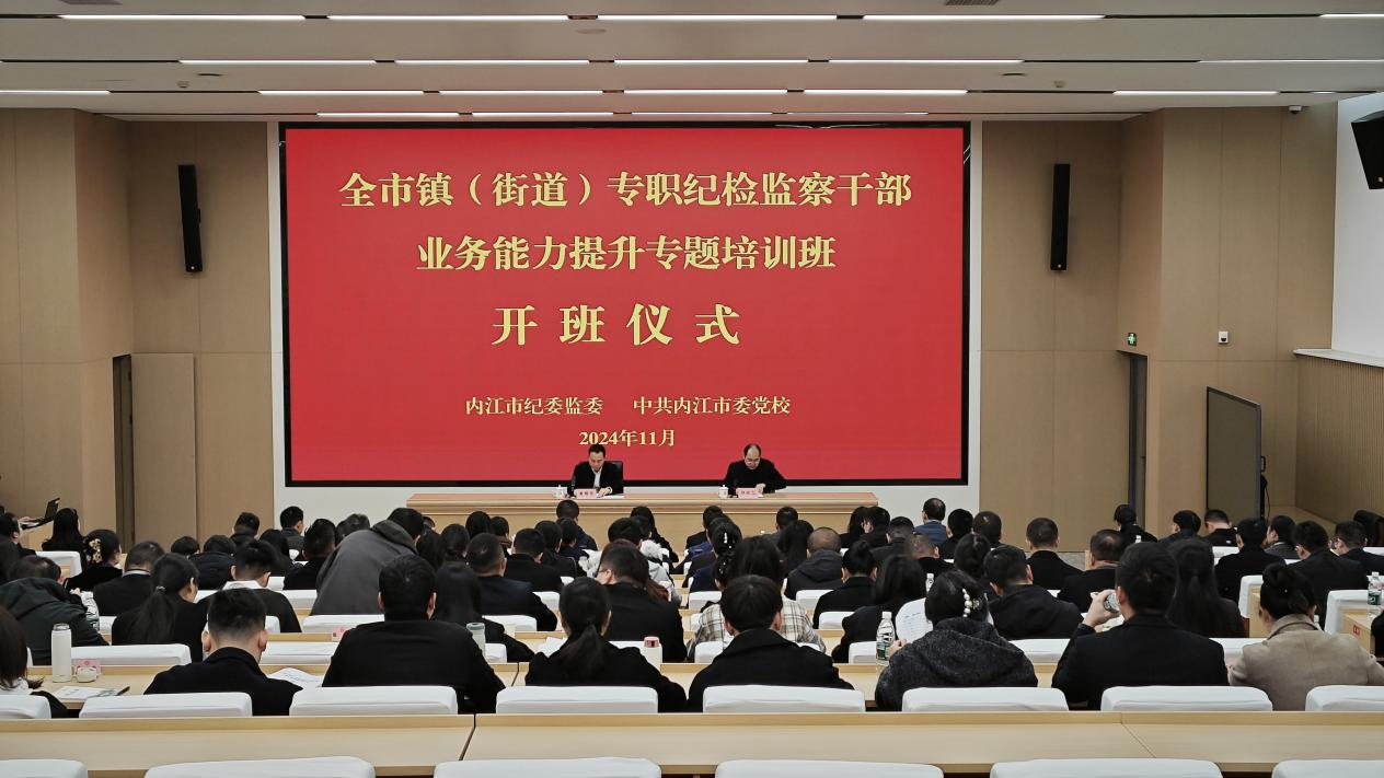 11月18日,全市镇(街道)专职纪检监察干部业务能力提升专题培训班在内江市委党校开班,市纪委常务副书记、市监委副主任黄国华出席开班式并作开班动员讲话,市纪委常委、机关党委书记郭镔乙主持开班式,第一期90余名镇(街道)专职纪检监察干部参加开班式。本次培训分两期举办,共10天,全覆盖培训83个镇(街道)190余名专职纪检监察干部。