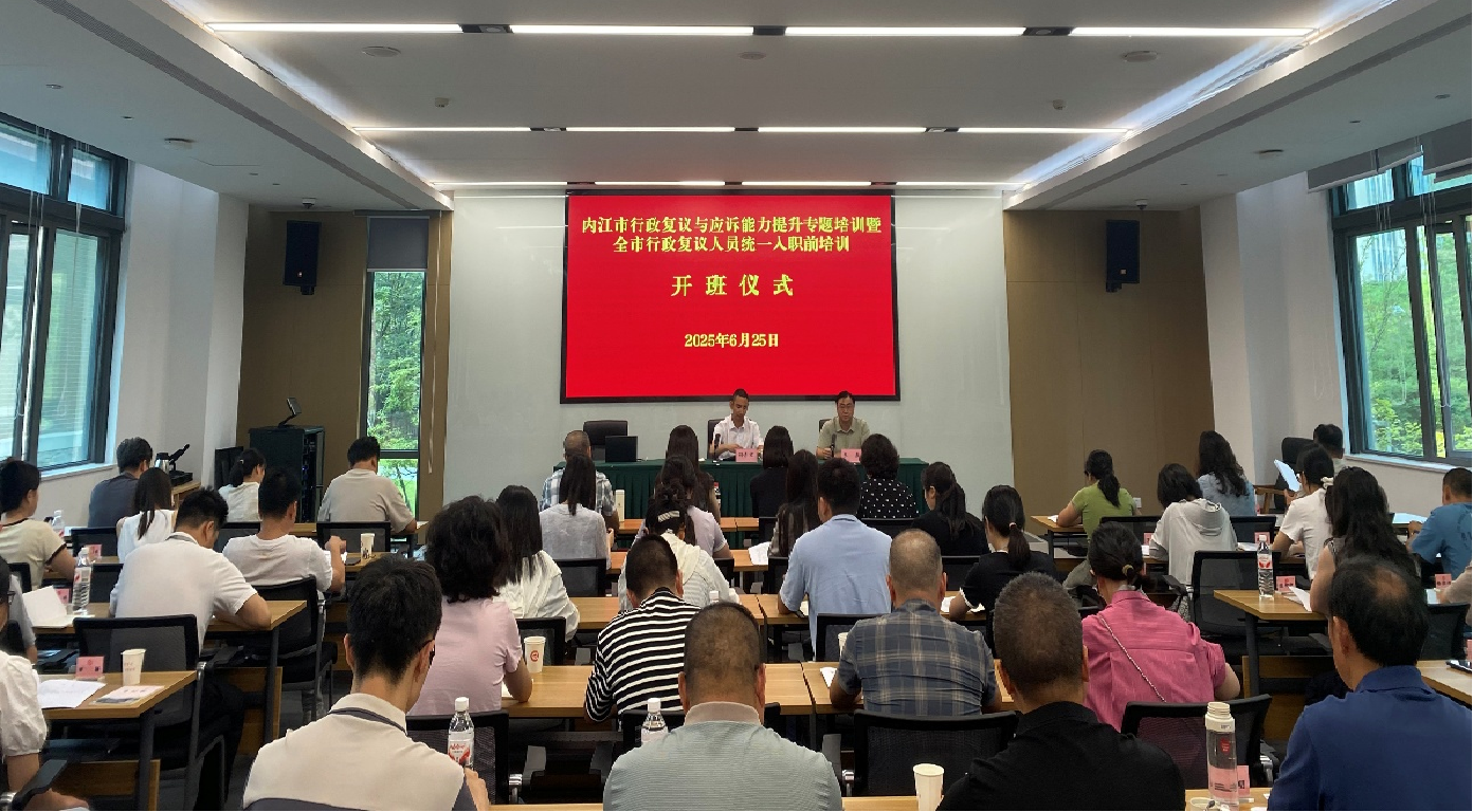 6月25日,内江市行政复议与应诉能力提升专题培训暨全市行政复议人员统一入职前培训在内江市委党校开班,市司法局党组成员、副局长孙勇君出席开班仪式并作动员讲话,市委党校机关党委书记张勇主持开班仪式。